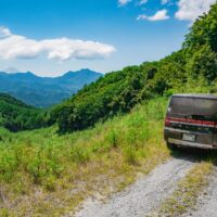 この先がどうなっているのか分からない初めての林道をデリカD5で走る。どんどん狭くなり通れなくなるかもしれない草木が生い茂ったダート、落石の跡から出来たガレ場、木々の間から時折見える山々の尾根、デリカD5で行く林道探索が至福の時。